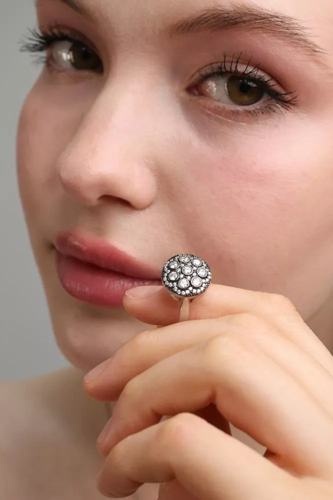 Yuvarlak formda ve göz alıcı taşlarla bezeli desenler, hem günlük kombinlerde hem de özel davetlerde şıklığınızı zarif bir biçimde vurgular.