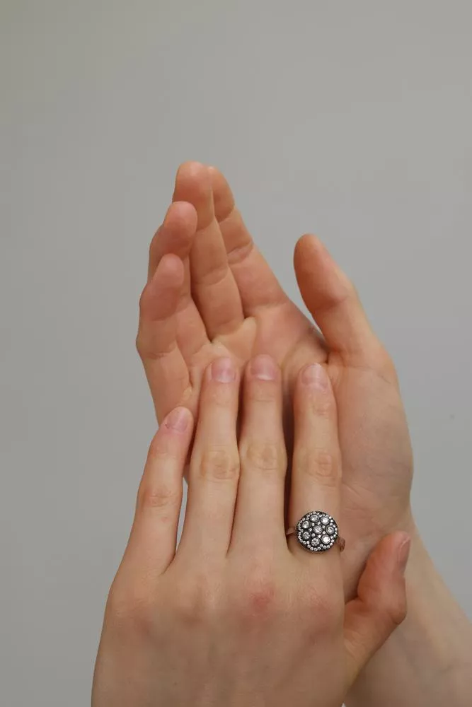 Antika motiflerden ilham alınarak tasarlanan bu özel yüzük, 925 ayar gümüşün nostaljik ihtişamını parmaklarınıza taşıyor.
