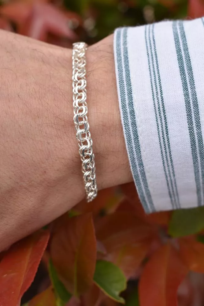 925 ayar gümüşün zamansız şıklığıyla hazırlanan bu bileklik, klasik stilin modern bir yansımasıdır. Günlük kullanıma uygun olduğu kadar özel anlara da eşlik edecek kadar iddialı