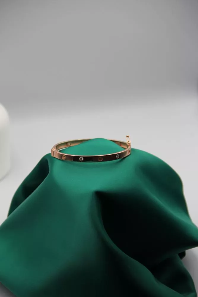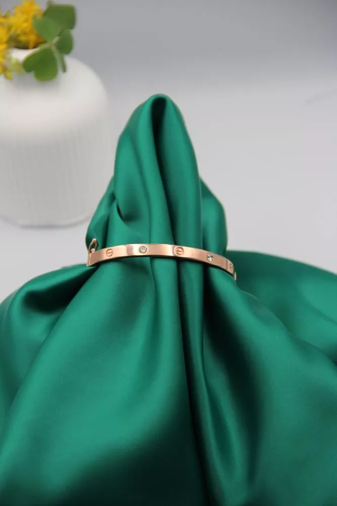 Zarafetin modern yorumuyla buluştuğu bu 925 ayar gümüş bileklik, rose kaplaması ve ışıltılı taş detaylarıyla stilinize sofistike bir dokunuş katıyor. Yuvarlak motiflerle bezenmiş tasarımı, sade şıklığıyla öne çıkarken her anınıza zarafet katmak için ideal bir tercih sunuyor.