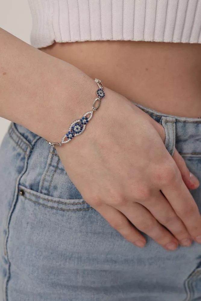 Nazardan koruduğuna inanılan sembol, zarif halkalarla birleşerek bileğinizde şık bir yol oluşturur.