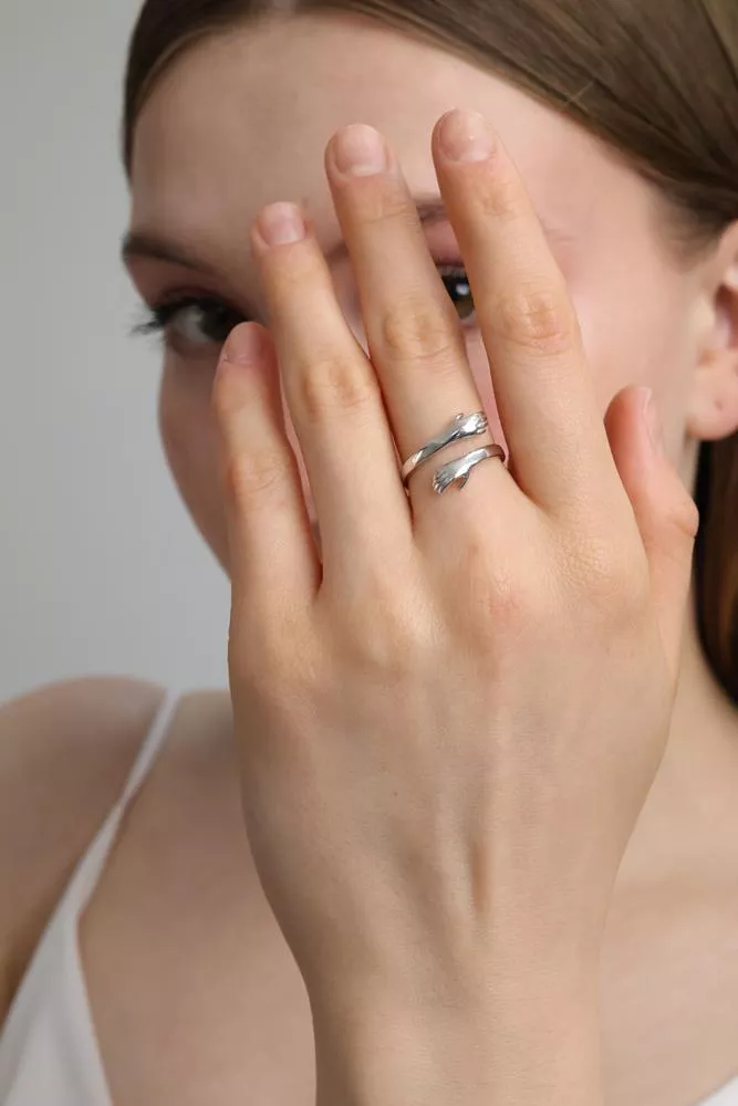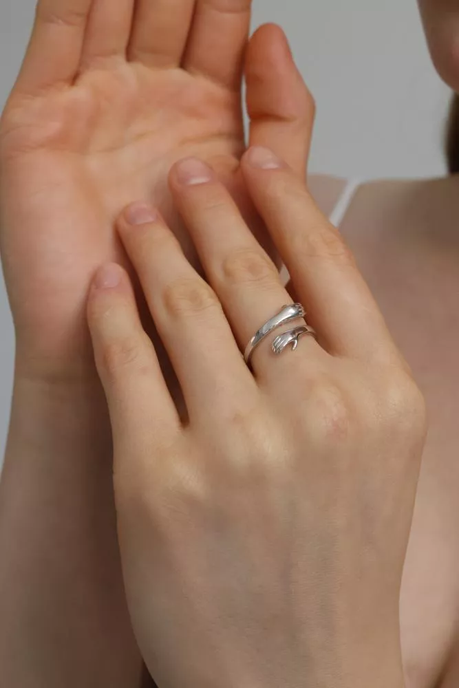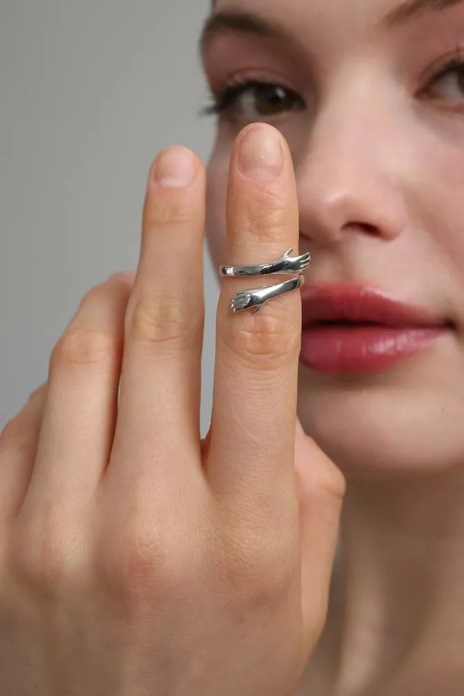 Sadelik ile duyguyu bir araya getiren bu özel yüzük, iki elin zarifçe birbirine sarıldığı tasarımıyla sevginin, bağlılığın ve şefkatin en naif hâlini yansıtıyor. 925 ayar gümüşten üretilen “Sarılan Eller Motifli Yüzük”, sevdiklerinize anlamlı bir hediye ya da kendinize duygusal bir sembol olabilir. Minimal ama etkileyici bu tasarım, duyguların zarif bir temsili.