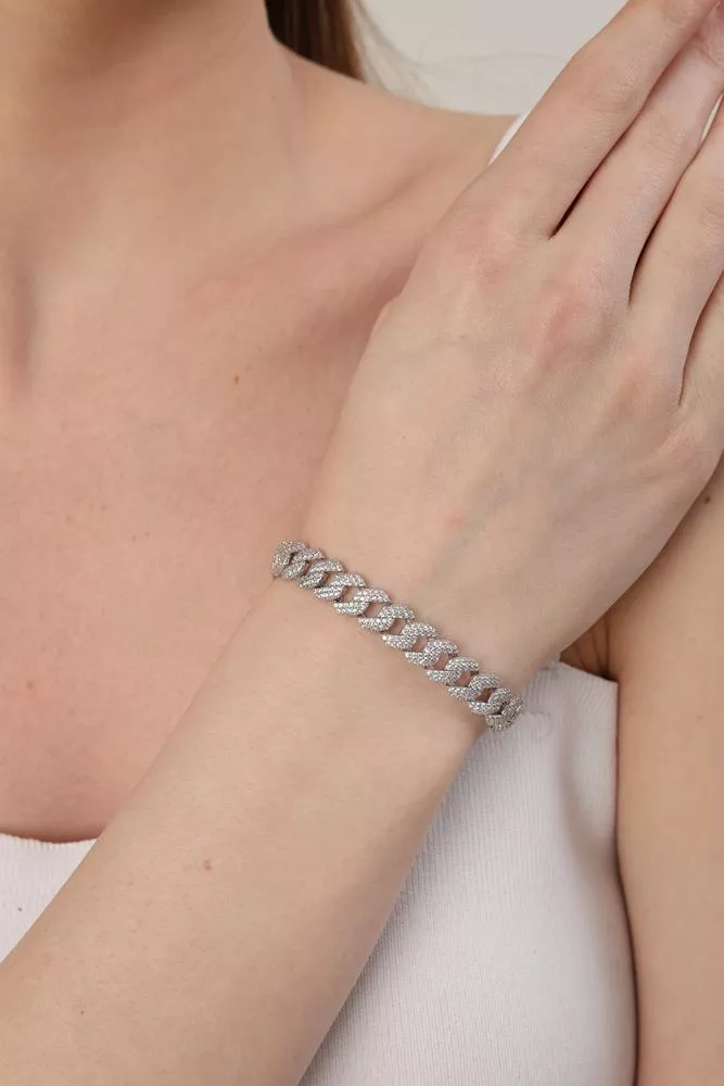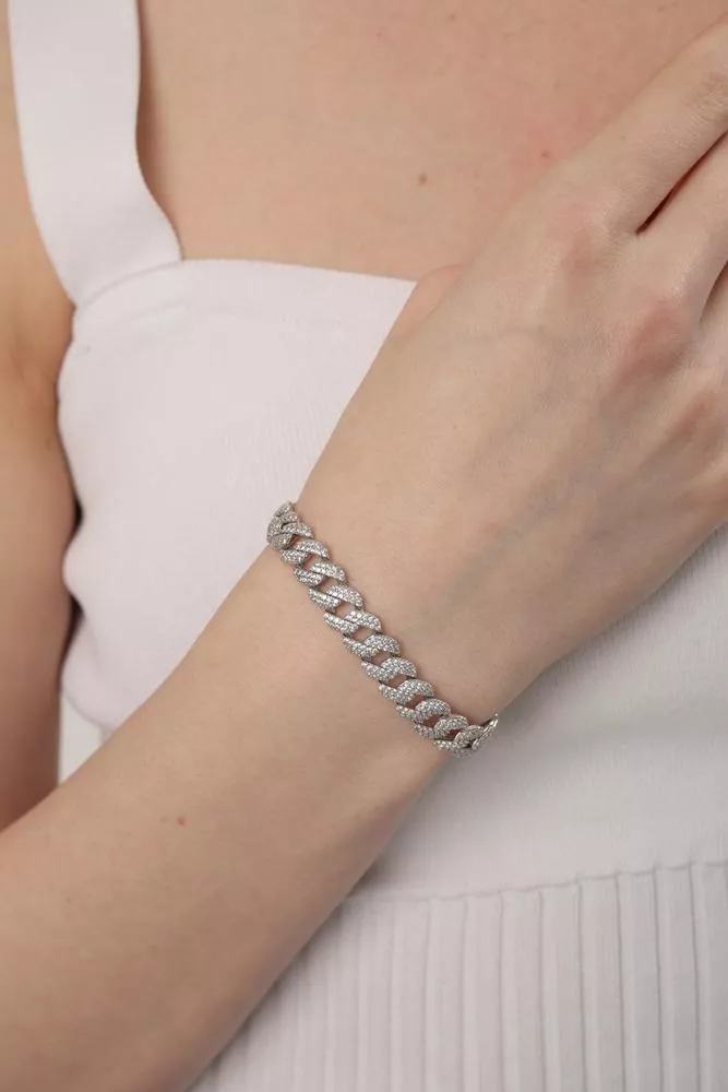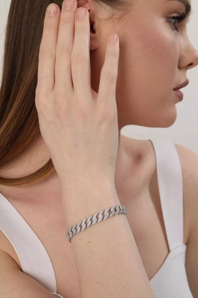 Klasik gurmet zincir formu, zirkon taşların göz alıcı ışıltısıyla yeniden hayat buluyor.